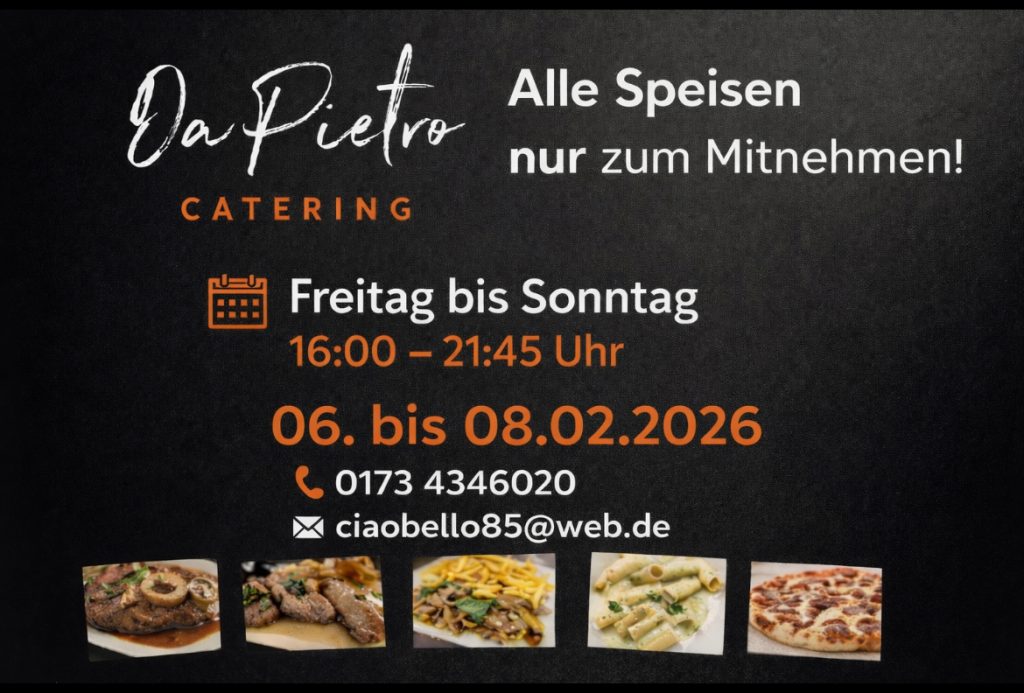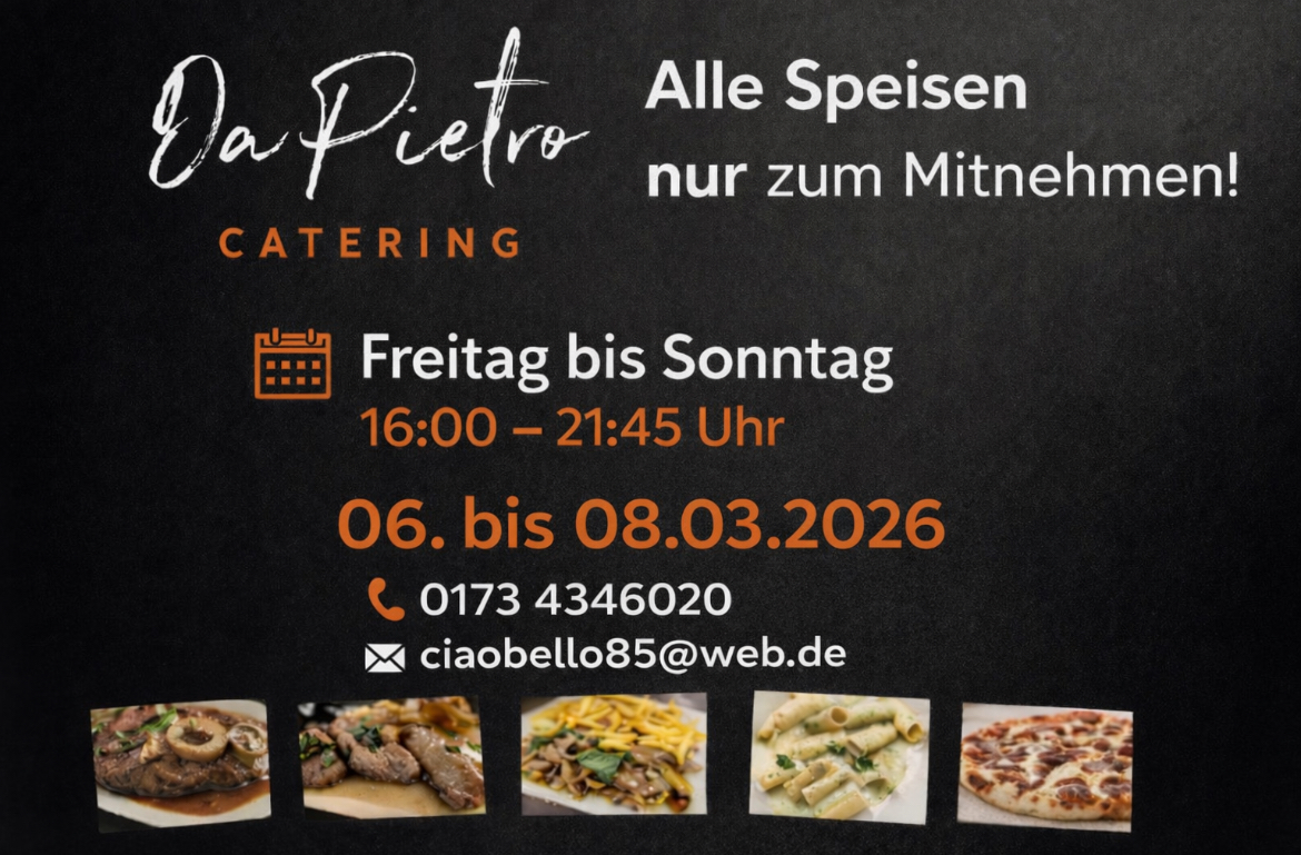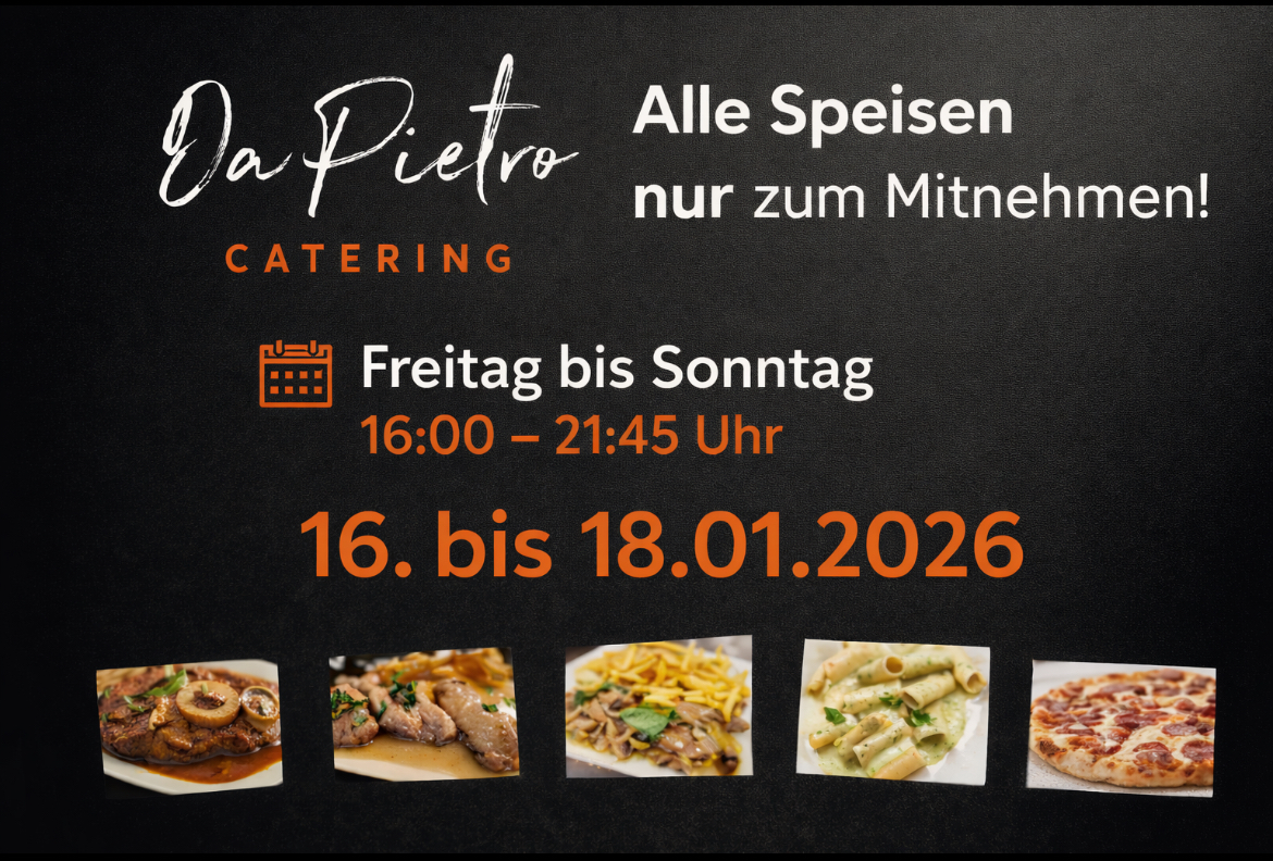 Im vergangenen Jahr mussten wir jedoch viele schwierige und schwere Entscheidungen treffen und teilen Ihnen nun leider mit, dass wir das Ristorante Da Pietro zum Ende des Jahres schließen werden. Das Catering und Party Service, wird jedoch von Salvatore weitergeführt. Für Ihre langjährige Treue als Freunde und Gäste des Hauses Da Pietro möchten wir uns herzlich bedanken. Wir wünschen Ihnen, wir wünschen Euch, allen eine gute Zeit.